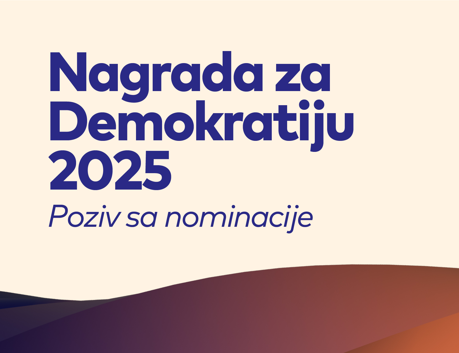 Pozivamo vas da nominujete svoje kandidate za Nagradu za Demokratiju 2025. najkasnije do 28.02.2026. u 23:59 časova.